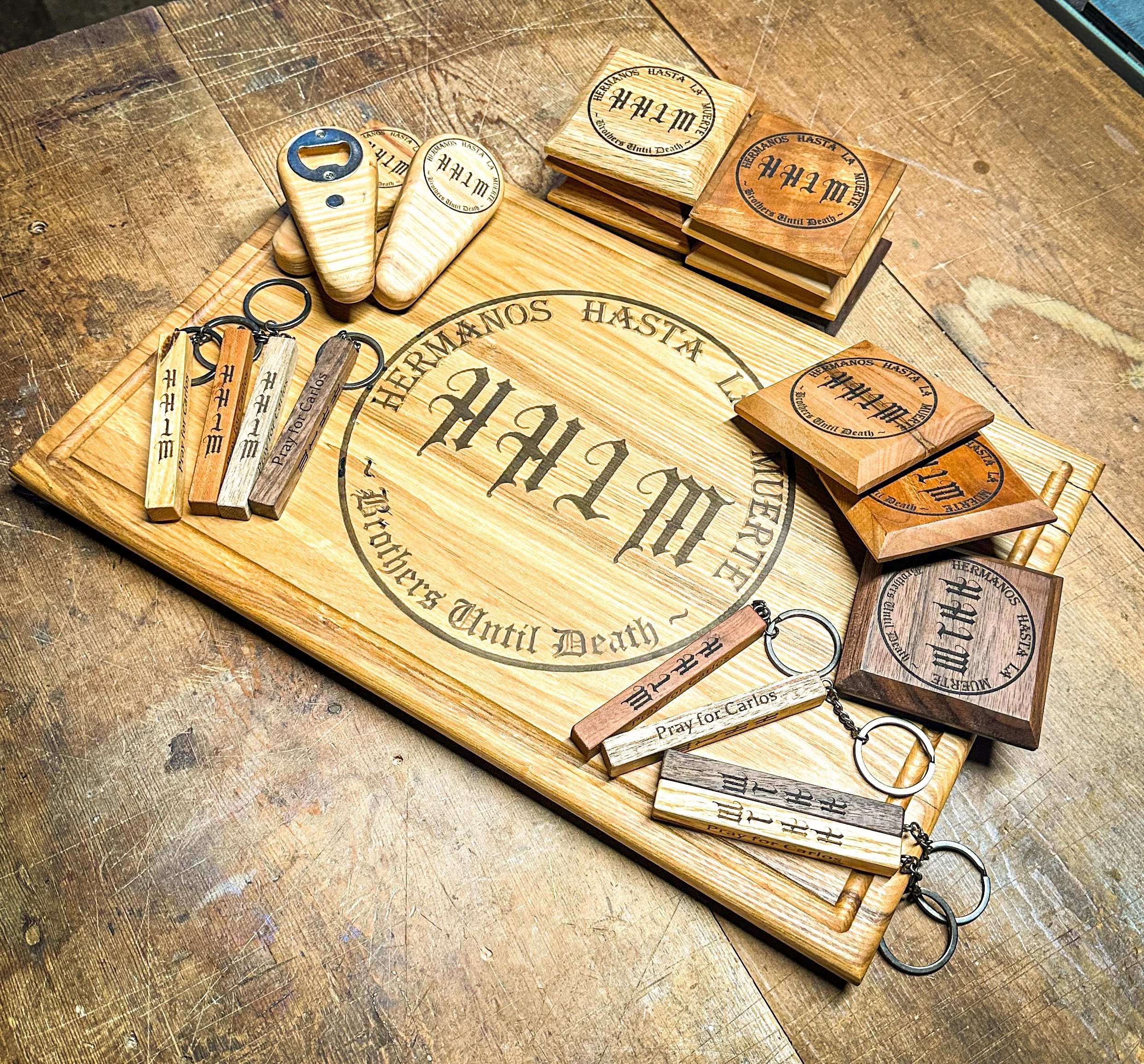 Customized AR Magazine Loader Board $60.00 Plain AR Magazine Loader Board $40.00 Heavy Duty End Grain Cutting Board. $450.00 HHLM Cutting Board $150.00 HHLM Coasters $40.00 HHLM Bottle Openers $25.00 HHLM Key Chain $15.00